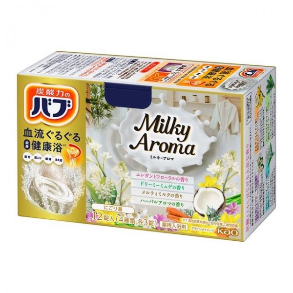바브 밀키 아로마 입욕제는 고농도의 '탄산력'과 '따뜻한 베일 성분(Warm Veil Ingredient)'이 온욕 효과를 높여 신체 깊은 곳까지 따뜻하게 풀어주는 약용 탄산 입욕제(의약부외품)입니다. **피로, 어깨 결림, 요통, 냉증** 등 복합적인 피로에 효과적이며, 짧은 시간의 입욕으로도 온열 효과가 지속됩니다. 아미노산계 염소 제거 성분 배합으로 일반 물보다 부드러운 약산성의 물로 만들어줍니다. 이 제품은 **4가지 종류의 밀키(유백색) 아로마 향**이 각 3정씩, 총 12정으로 구성되어 있어, 하루의 마무리를 고급스러운 향기와 부드러운 밀키탕으로 즐길 수 있는 호화로운 시간을 선사합니다. |