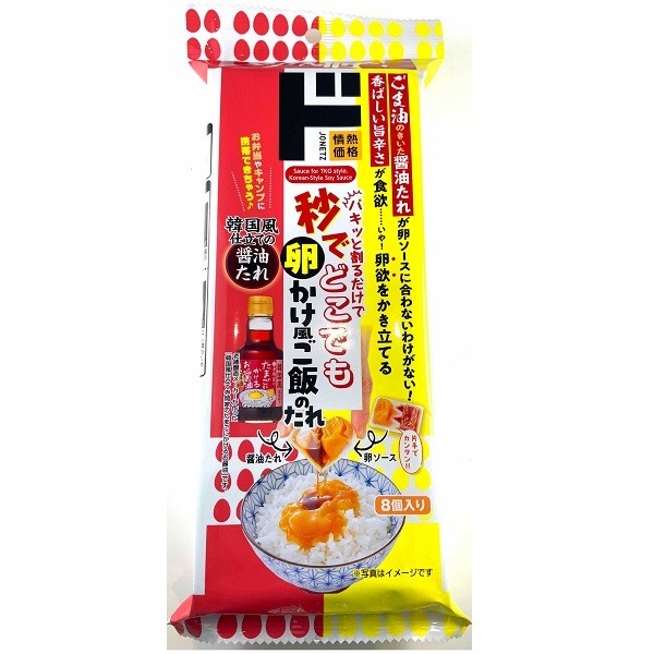 | **Instant TKG!? Egg‑Style Rice Sauce (Korean Style)**은 일본 인기 즉석 계란밥 소스 제품에 **한국풍 양념**을 더한 변형 소스로, 한국인의 입맛에 맞추어 고추장, 고추가루풍 매콤 달콤 소스와 계란풍 베이스가 조화된 맛입니다. *기존의 TKG 소스처럼 밥 위에 뿌리기만 해도 즉석에서 풍부한 풍미의 한국식 계란밥을 즐길 수 있습니다.* ※ 원래 제품은 일본 돈키호테의 “도!초간단 어디서나 한국풍 계란밥 소스”이며, 이 변형은 **한국풍 시즈닝 추가** 버전으로 구성됨. | |