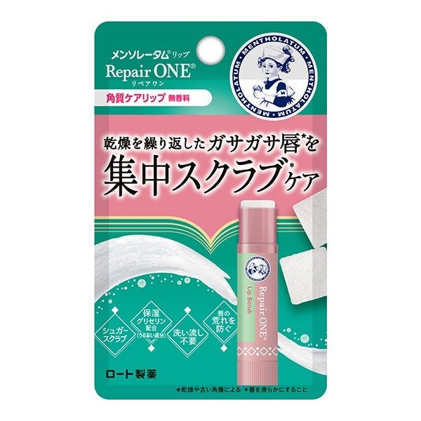 **슈가 스크럽** ($※1$, **스크로오스** 성분) ※ 미세화되어 입술 자극을 줄임 |