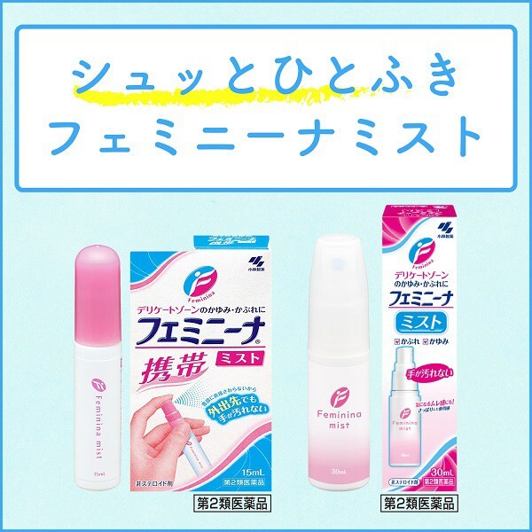 | 페미니나 미스트 30mL는 코바야시제약에서 제조한 여성의 민감한 부위(외음부)용 가려움 완화 미스트입니다. 생리 중, 땀이 찼을 때, 속옷 마찰 등으로 인한 불쾌감이나 가려움에 효과적으로 작용합니다. 손을 사용하지 않고 간편하게 뿌릴 수 있는 스프레이 타입으로 위생적이며, 휴대하기 쉬운 소형 사이즈로 언제 어디서나 사용할 수 있습니다. | |