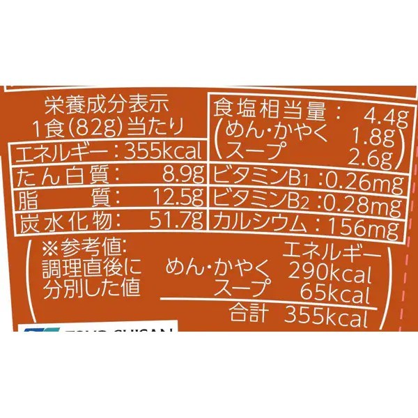 스프: 미소(된장), 향신료, 설탕, 포크 엑기스, 탈지대두분, 치킨 엑기스, 향미유지, 분말 야채 등 부재료: 양배추, 맛付 돼지고기, 옥수수, 파 포함 알레르기 유발 성분: 밀(글루텐), 달걀, 우유성분, 대두, 돼지고기, 닭고기, 새우, 젤라틴 등 포함됨. |